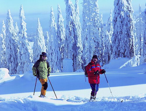 Winter im Nationalpark: Schneeschuhwanderungen, Langlaufloipen und still verschneite Wälder.